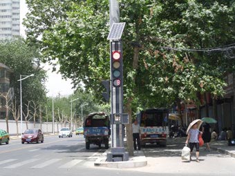 2011年6月6日我公司工作人員赴西安雁南三路安裝調試JXG太陽能組合式交通信號燈,JXG太陽能組合式交通信號燈的光伏(太陽能電池)發(fā)電系統(tǒng)具有安全可靠、無噪聲、無污染、制約少、故障率低、不需外界交流電源、維護簡便等優(yōu)點。JXG太陽能組合式交通信號燈系統(tǒng)采用太陽能電池板和蓄電池供電,無需外部能源(交流AC220V)。系統(tǒng)帶有自動調光功能,在陰天和夜間進行減光,以節(jié)約耗電量,延長工作時間。